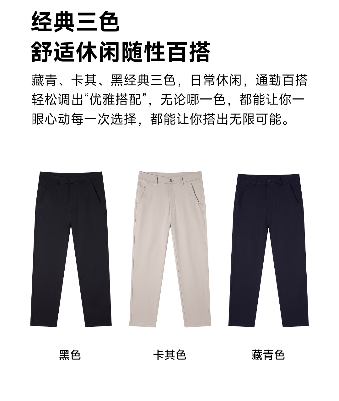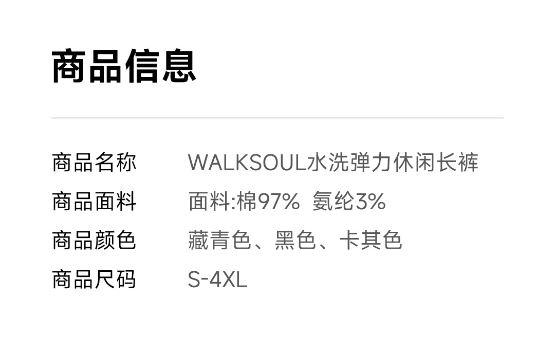 Walk Soul 免烫抗皱水洗弹力直筒休闲长裤 黑色 S